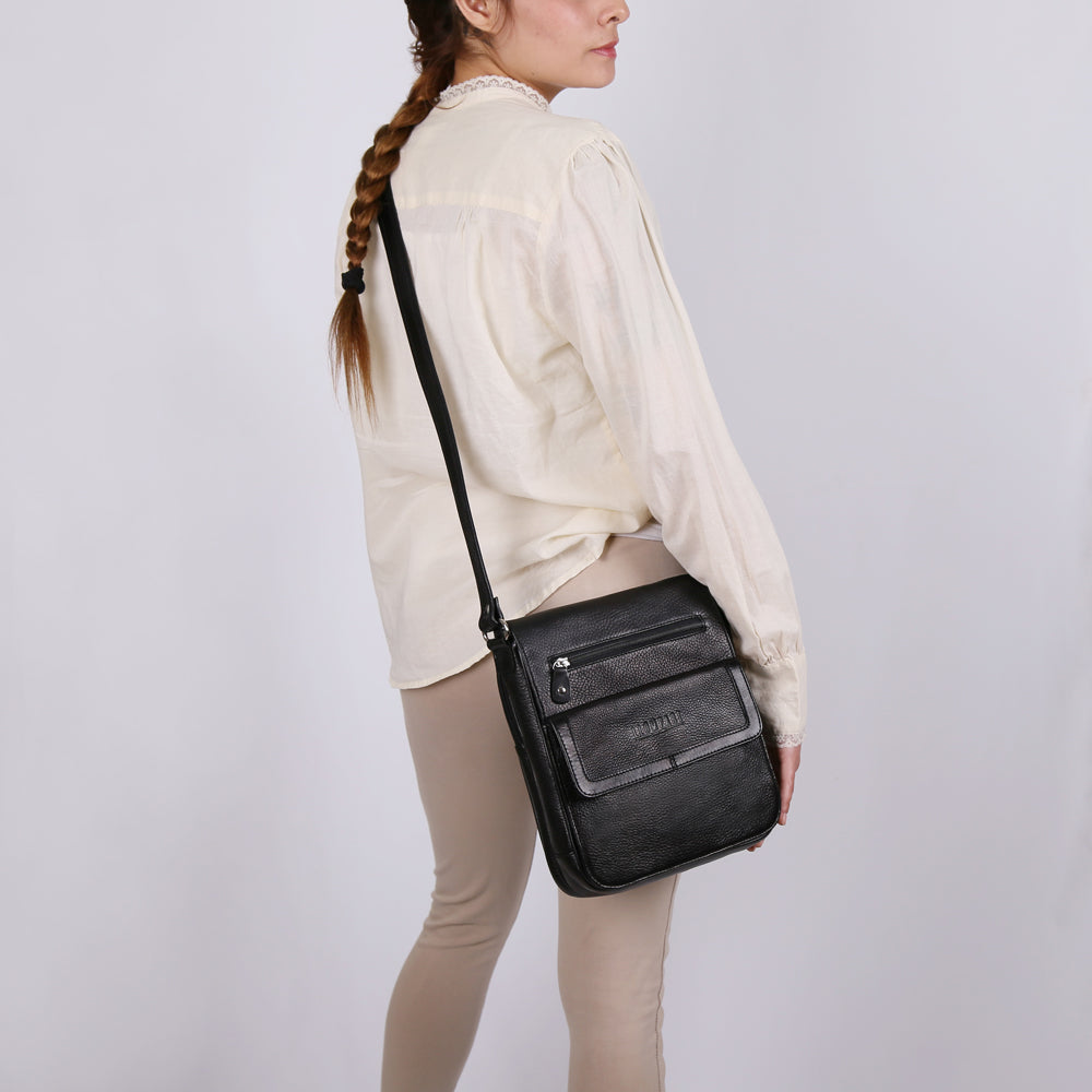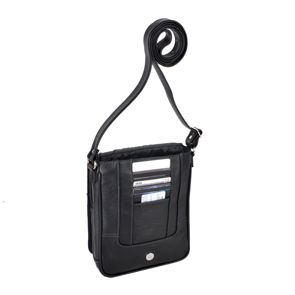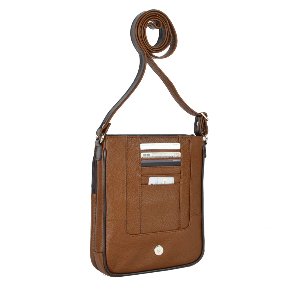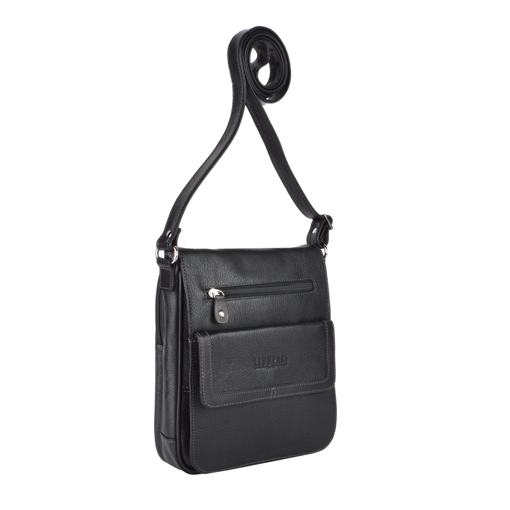 Mariconera de piel para hombre. Su diseño permite transportar artículos personales separados en diferentes compartimentos de manera ligera y cómoda. Además cuenta con una tapa con broche de imán. El diseño de la mariconera brinda espacios para tarjetas, accesorios pequeños, así como bolsillos ocultos dentro del forro. El diseño de la mariconera encaja con una vestimenta de trabajo y casual.