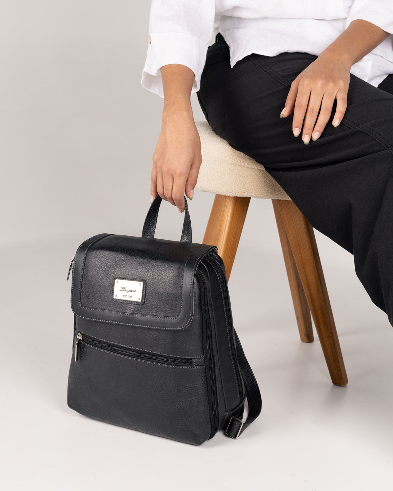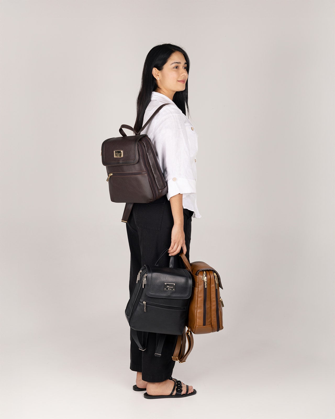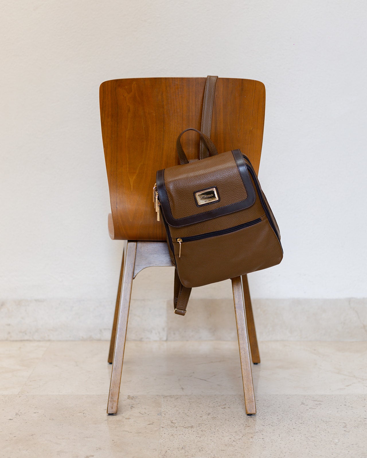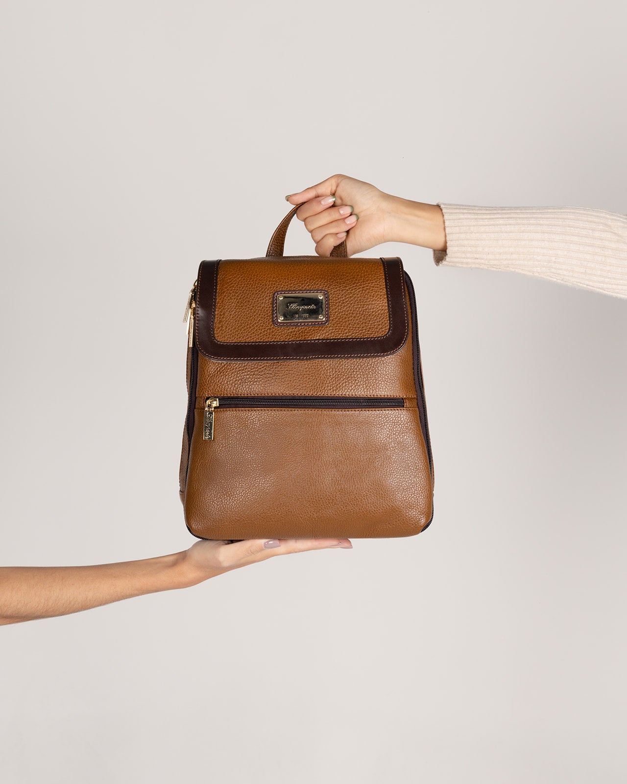 Backpack para dama confeccionada con piel genuina suave al tacto con acabado graneado y detalles resaltados en una piel firme, que en conjunto con sus herrajes en color níquel generan un toque elegante en el accesorio ideal para sobresalir en cualquier ambiente.