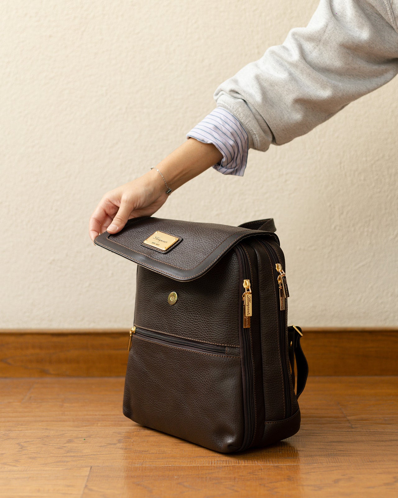 Mochila de Piel para Mujer Modelo Ll-2173 Color Café Obscuro
