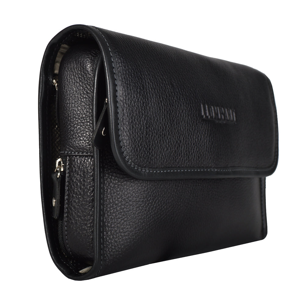 Neceser confeccionado con piel genuina de textura suave y acabado graneado, que combina elegancia y practicidad en un diseño funcional. Su estructura compacta y resistente lo convierte en el accesorio ideal para caballero, perfecto para llevar tus pertenencias personales y esenciales de viaje con estilo y comodidad.
